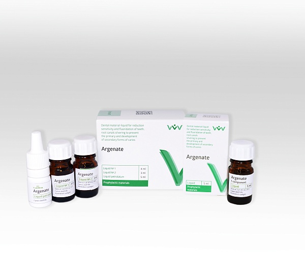 El material dental de un componente "Argenat" es para su uso en el desarrollo de las formas principales de procesos de caries (especialmente de caries en los dientes de leches) para reducir la sensibilidad dental, para prevenir el desarrollo de caries secundarias después de la aplicación de los trabajos de restauración, así como el plateado de la raíz.