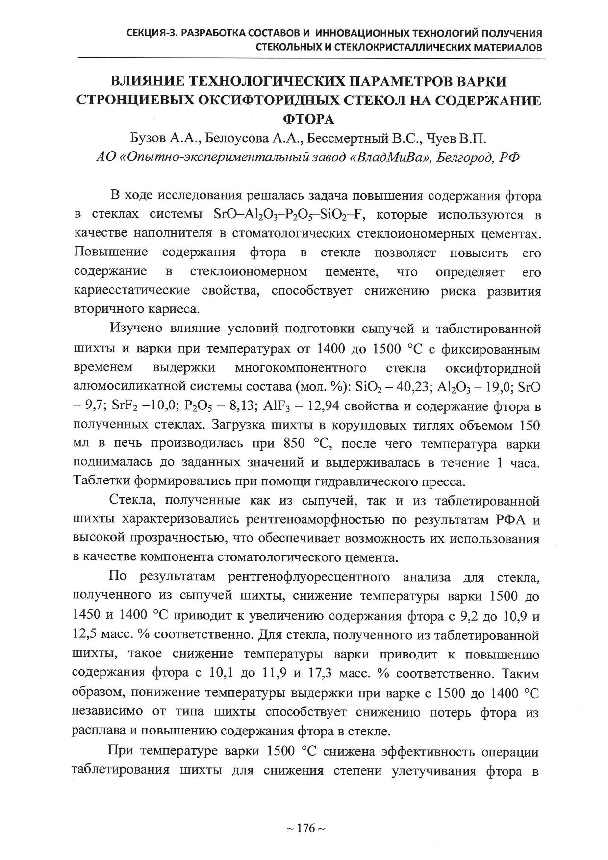 EFECTO DE LOS PARÁMETROS TECNOLÓGICOS DE LA EBULLICIÓN DEL VIDRIO DE OXIFLUORURO DE ESTRONCIO SOBRE EL CONTENIDO DE FLUORURO