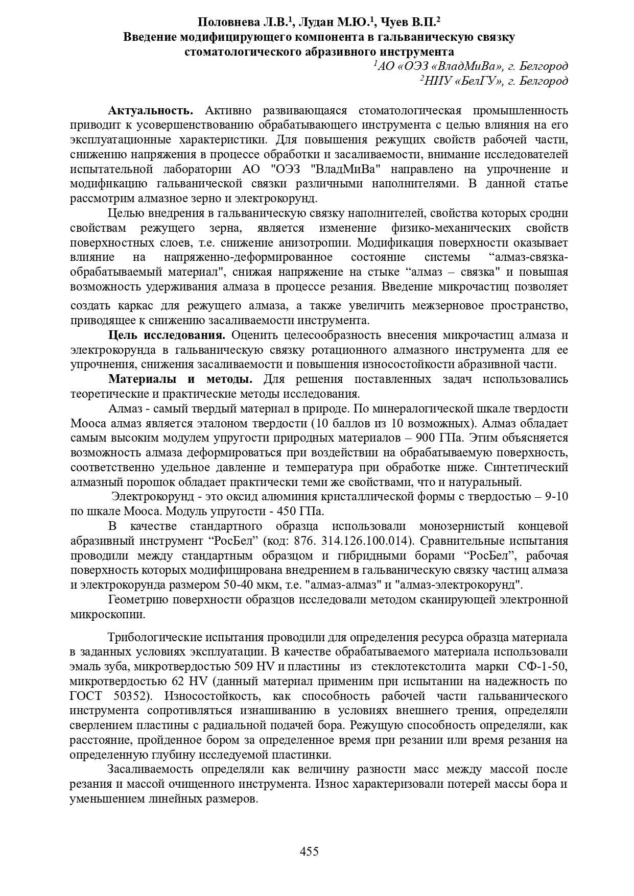 Introducción de un componente modificador en la unión galvánica de un instrumento abrasivo dental.