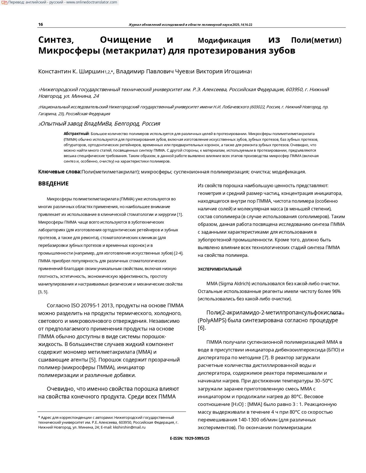 Синтез, Очищение и Модификация из Поли(метил) Микросферы (метакрилат) для протезирования зубов