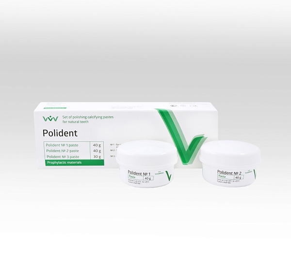 POLIDENT N 1 – para ablandar y eliminar el sarro sin dañar el esmalte. Recomendado para el tratamiento de decoloración dental de tejido duro, para los fumadores y los pacientes con litiasis. La pasta "Polident número 1" es por lo general una combinación de acción química y mecánica en una placa sólida. El componente ácido de la pasta se ablanda depósitos sólidos abrasivo los limpia de la superficie del diente para el procesamiento y la prevención de antiséptico depósitos recurrentes de la placa.