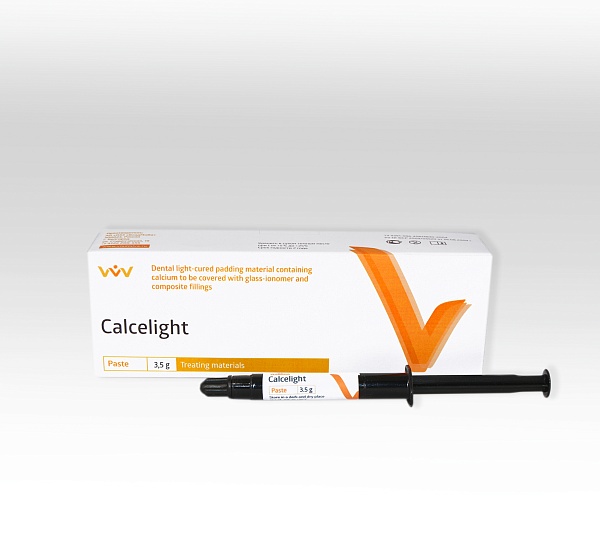 "Calcelight" es un compuesto de fotocurado de un solo componente, material de revestimiento radioopaco que contiene en su composición hidróxido de calcio, un aglutinante polimérico (oligocarbonato metacrilato), relleno radiopaco, iniciadores y activadores de la fotopolimerización.